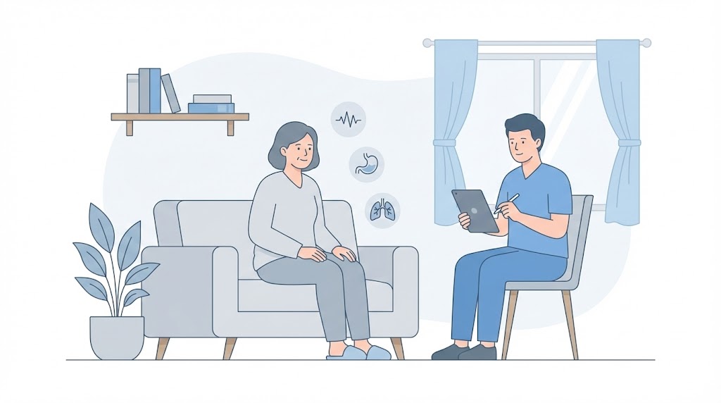 在宅緩和ケアは痛みだけでなく、息苦しさ、吐き気、食欲低下、だるさ、不眠、不安などのつらさも含めて相談されることがあります。